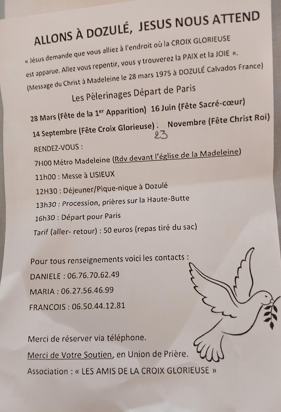 Le 28 mars 2022 a eu lieu le Pèlerinage du 50ième anniversaire de l’apparition de la Croix Glorieuse à la Haute Butte de Dozulé . Malgré la fermeture de l’Eglise de Dozulé de très nombreux pèlerins se sont rendus à la « Haute Butte »